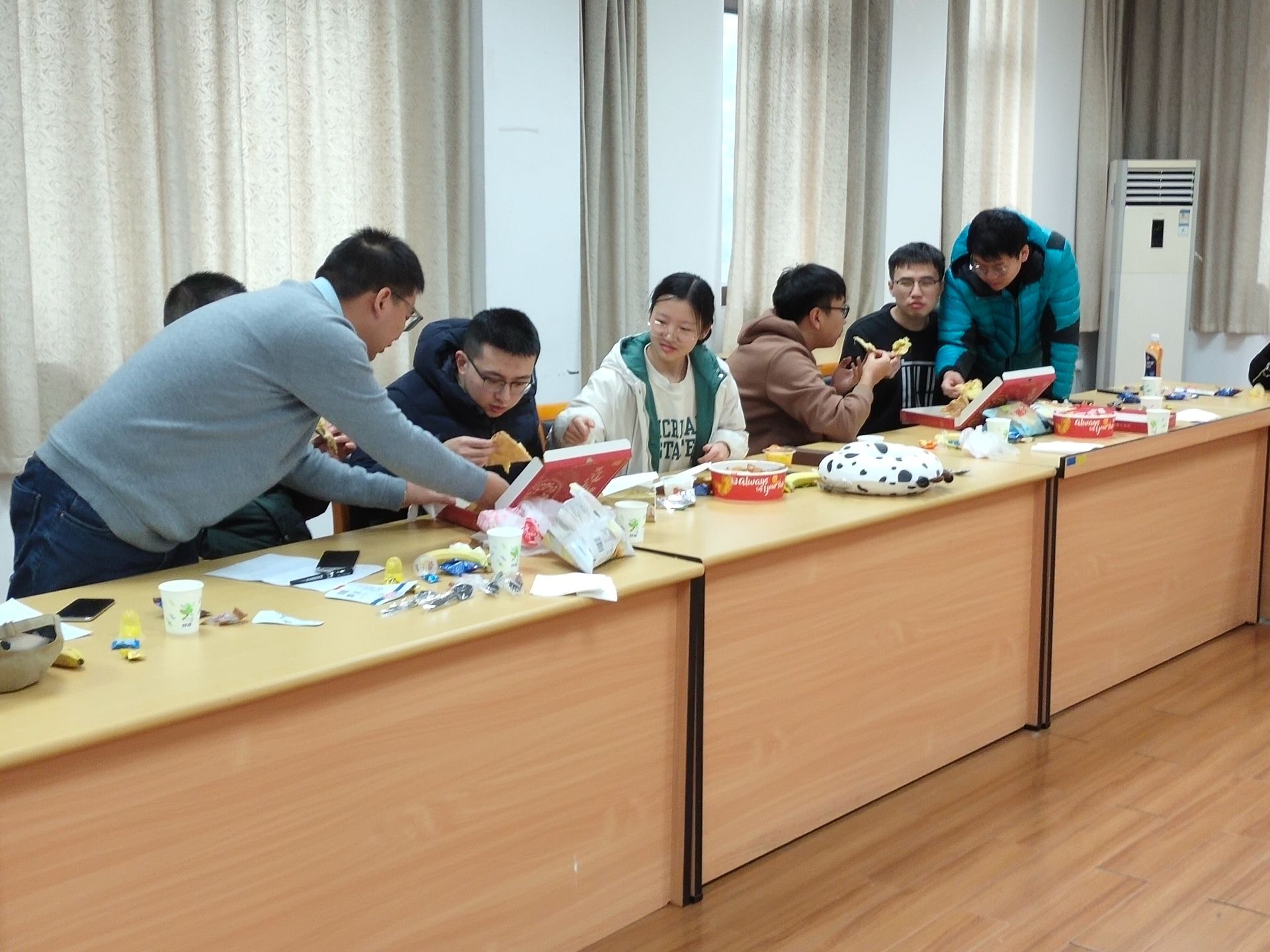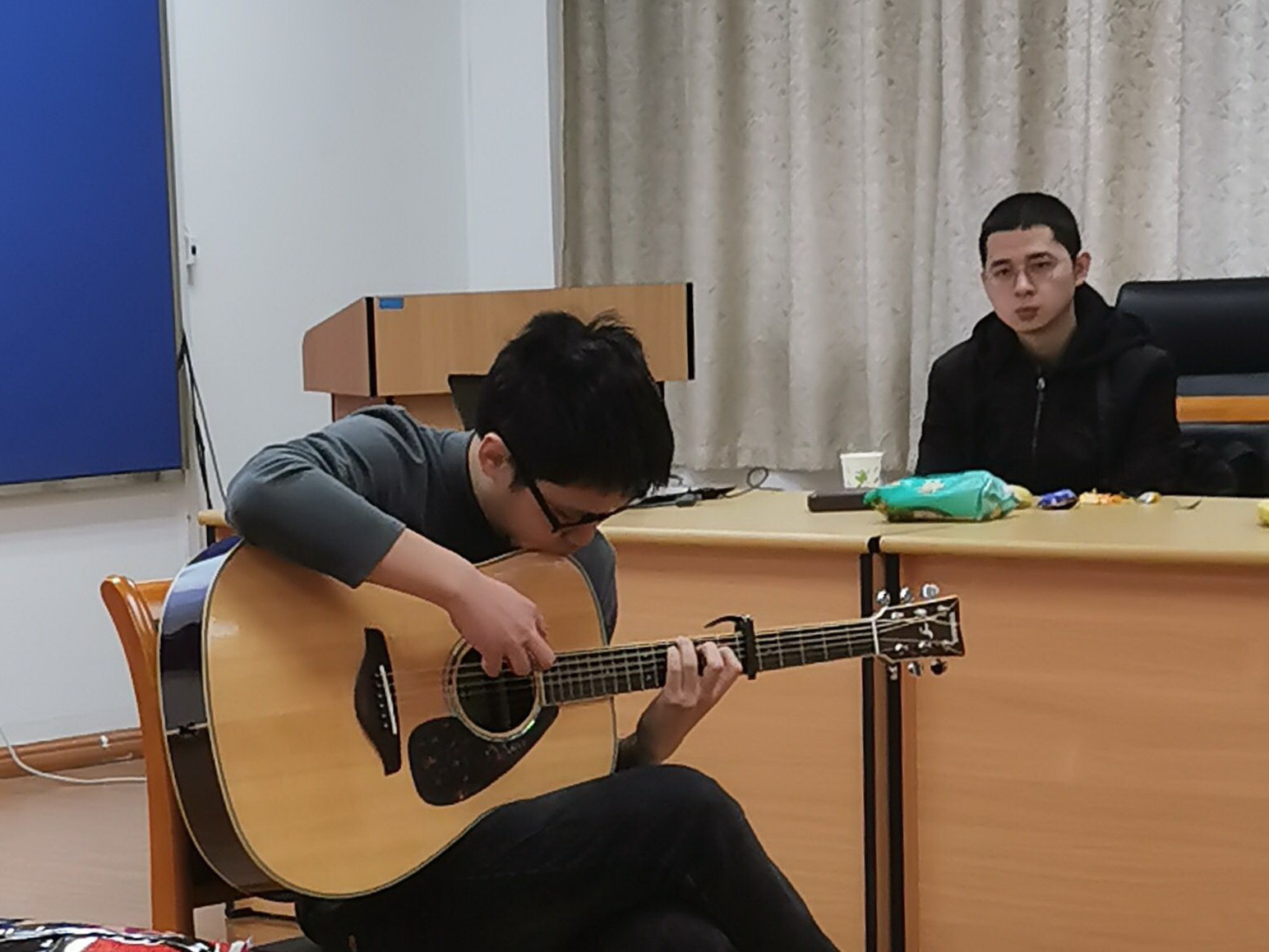 在全体学生汇报完之后,教研室还举办了联欢会,主要有吉他弹奏、猜谜语以及合唱等节目,精彩的节目深深地吸引了大家,并且赢得了阵阵掌声,在表演结束之后,教研室全体成员还进行了聚餐,本次的年度总结及联欢会在轻松愉快的氛围中结束。