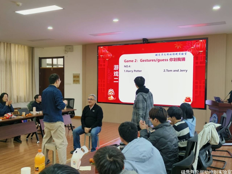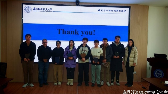2025年1月2日,南京航空航天大学磁悬浮及振动控制实验室于A6-6201举办了英语创新七问汇报活动及元旦联欢活动。此次活动旨在总结课题的创新成果,展望新一年的科研与学习目标,同时借此机会增进成员之间的合作与友谊。 活动的首个环节是“英语创新七问汇报”,该环节由实验室成员以英语进行汇报,展示了在各自课题的创新研究思考以及成果,并与教研室各位老师和法国国立应用科学学院(INSA Lyon)Jarir Mahfoud教授进行了深入的讨论与分析。在此过程中,同学们不仅提高了英语表达能力,也加深了对科研创新过程的理解与认同。