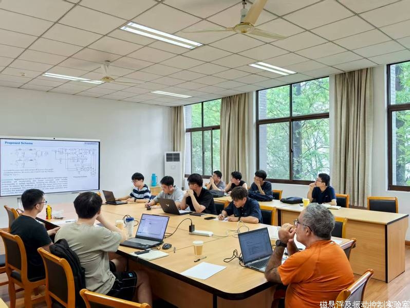 应磁悬浮及振动控制实验室邀请,法国国立应用科学学院(INSA Lyon)Jarir Mahfoud教授于2025年8月8日至2025年8月14日莅临指导我实验室,开展为期7天的学术交流。 Jarir Mahfoud教授与我实验室的周瑾教授、徐园平副教授、周扬博士后以及曾磊、江琦琦、凌阳熠、狄铭旸、尹茹沁等博士研究生进行课题相关的交流探讨,课题组其他成员也针对自己的研究方向或课题与教授进行了积极探讨。Jarir Mahfoud教授分享了自己的研究成果和经验,结合丰富的实践案例,交流许多新的学术观点和研究思路,使课题组成员接触到了国际前沿的学术思想和研究方法,拓宽了学术视野,提高了科研素养和创新能力,让每一位老师同学受益匪浅。