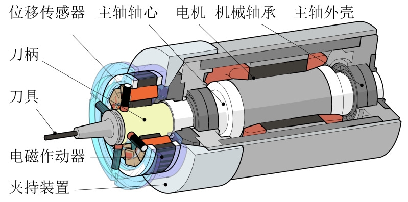 铣削加工过程中,振动不仅加剧刀具的磨损,还直接影响零件的加工精度,因此振动抑制技术一直是铣削加工领域的研究热点之一。为了解决铣削加工中存在的强迫振动问题,提高加工系统的稳定性,提出集成电磁作动器的主轴-刀具系统。该系统通过将电磁作动器集成于主轴-刀具系统中,并在刀柄部位施加可控的电磁力,旨在有效抑制铣削过程中的振动。