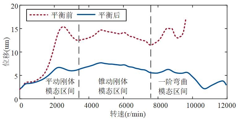 图4 平衡前后振动位移幅值对比