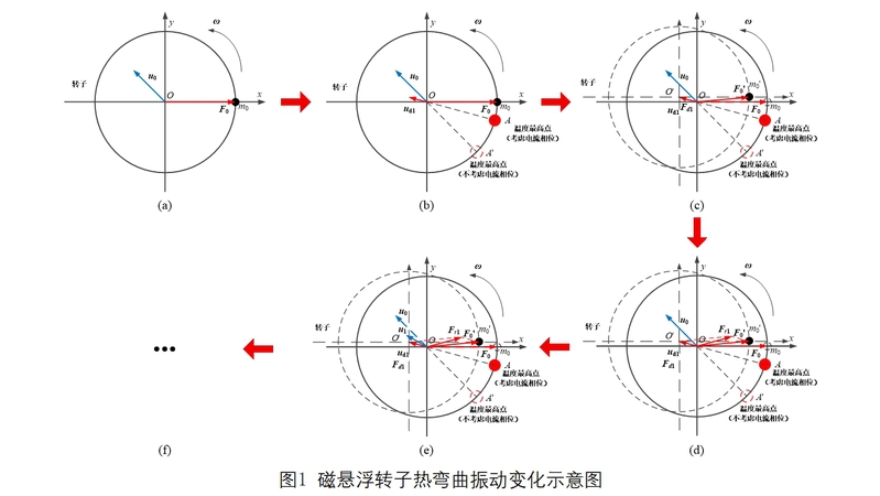 为了研究磁悬浮轴承-转子系统中由于轴颈铁损集中而出现的热弯曲振动现象,本文根据磁悬浮轴承的工作原理,总结出热弯曲振动的变化规律,并利用Bertotti铁损分离模型得到转子轴颈处的铁损耗,以铁损耗作为热源,结合磁悬浮轴承的支承特性,建立转子热-结构耦合振动方程,求解得到热弯曲振动响应。同时,为了研究转子工作时热弯曲振动的变化过程,使用一种迭代计算的方法,不断更新计算条件,反复迭代计算,直到振动收敛或发散,由此判断热弯曲振动对系统的影响。计算结果表明:转子旋转频率对整体温升影响显著,轴颈温差主要取决于振幅,温度最高点位置及热弯曲方向与振动位移方向有关,并决定着振动的变化。