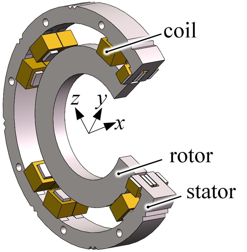 转子轴向位移是反映转子系统及旋转机械设备运转状态的关键技术指标,是转子系统安全监测及系统特性研究中常用的监测量,在磁悬浮轴承、精密机床和智能轴承等领域的系统控制中起关键作用。转子轴向位移的检测通常采用电涡流传感器、光学传感器、霍尔传感器和轴向电感式位移传感器。与其他传感器相比,轴向自感位移传感器具有线性度好、抗干扰能力强、安装简单、成本低等优点,具有广阔的应用前景。